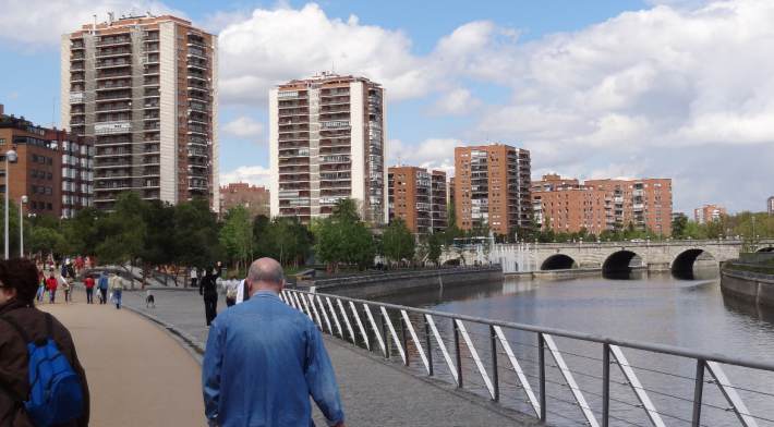 Hasta el fuerte crecimiento de Madrid tras la guerra civil el Manzanares es un límite entre la ciudad (que no siempre alcanza sus riberas) y el campo. El crecimiento desde esa época en la orilla derecha no ha evitado ese papel de límite, en este caso en términos sociales, entre la ciudad central y zonas que acogieron a poblaciones rurales de baja renta (Carabanchel, Orcasitas, Aluche). Estos territorios son anexionados al municipio de Madrid poco tiempo después. Salvo por una parte limitada al norte, donde la cornisa del Palacio Real es visible, y ciertos ámbitos donde la transformación de los corredores ferroviarios iniciada en la década de 1980 ha dado buenos resultados, la mayoría de los edificios que componen las fachadas de este recorrido muestran una arquitectura urbana poco memorable.
