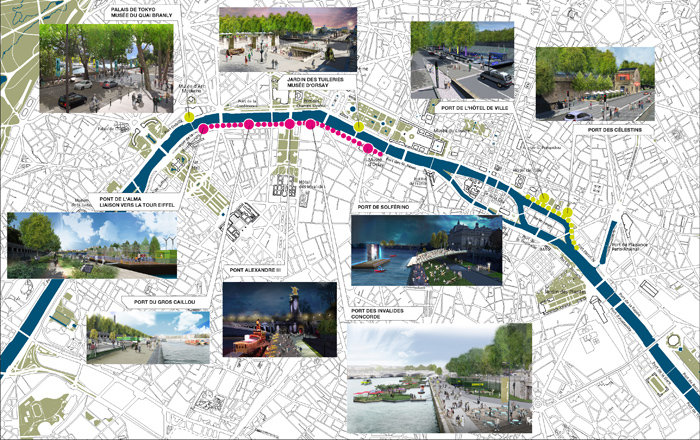 El Ayuntamiento de París promueve en la actualidad la transformación del tramo convertido en autovía de los muelles del Sena. Es un paso consecuente con el desarrollo durante la última década de iniciativas como Paris Plage (playa urbana veraniega), que han supuesto cierres temporales de la circulación en la vía. El proyecto ha provocado una disputa con la administración Sarkozy, que aducía que los estudios de tráfico presentados eran insuficientes para justificar el proyecto. La propuesta afecta a 2,5 km de muelles y ha sido presentada como “una rambla a la española” al borde del agua, con instalaciones móviles como pequeños invernaderos o una pista de atletismo. En la orilla derecha se plantea mantener dos carriles de circulación con medidas de templado de tráfico y semaforizado, y un paseo peatonal de 1,5 km. En la orilla izquierda se cierran al tráfico rodado 2,3 km de vía rápida, liberando completamente el espacio entre el museo de Orsay y la torre Eiffel. Se plantea un refuerzo de los medios de transporte público en los tramos afectados.