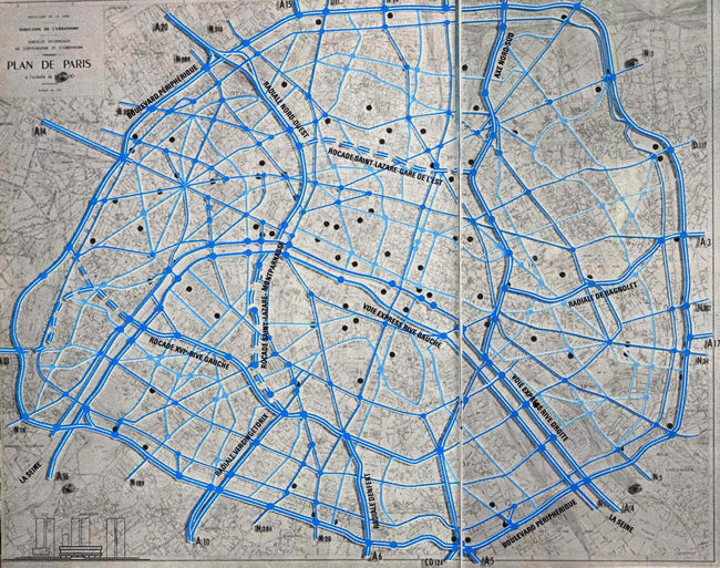 Durante la presidencia de Georges Pompidou (1969-1974) se plantean propuestas de ampliación de la red de autopistas urbanas atravesando el interior del recinto definido por el Peripherique, pero sólo llega a concretarse el uso para el automóvil de parte de los muelles del Sena (voie sur berges).