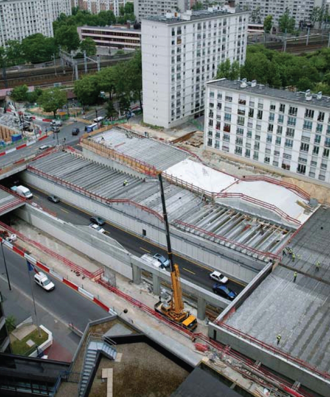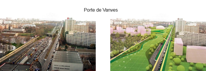 – Porte de Vanves: se cubren 260 metros de longitud, que junto con los puentes existentes son 410 metros continuos de túnel
