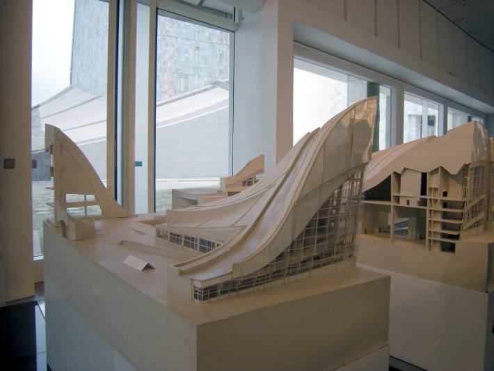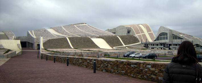 La arquitectura de la Ciudad de la Cultura de Santiago de Compostela se caracteriza por grandes volúmenes de geometría compleja, con revestimientos de granito sobre complejas estructuras metálicas. El aspecto del complejo es sumamente mineral.