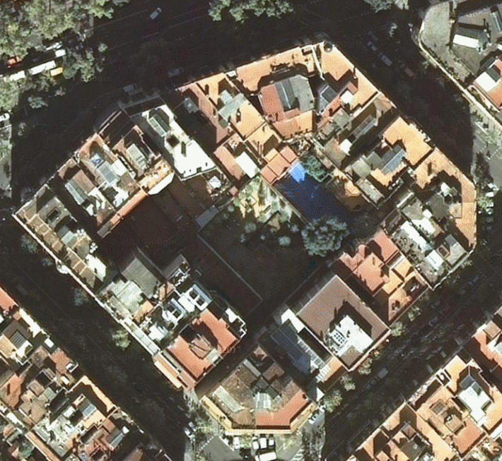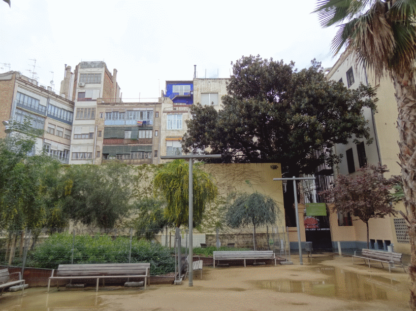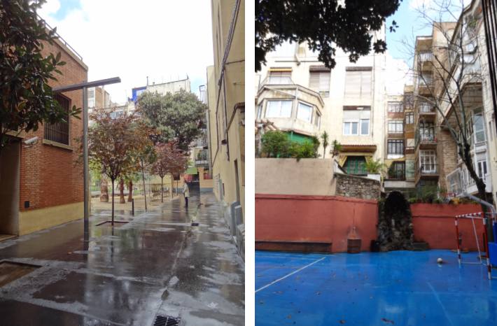Los patios de manzana previstos han sido a menudo ocupados por garajes u otros usos. El Ayuntamiento de Barcelona ha acometido un programa para recuperar estos espacios como pequeños parques abiertos al público. Estos son los jardines de Laura Albeniz (calle Pau Claris con Provença)