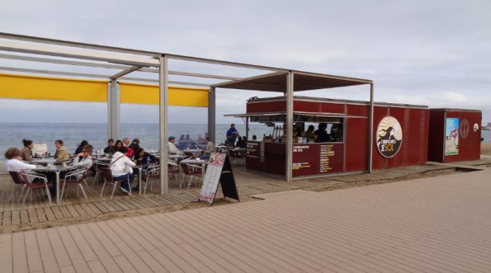 Las playas españolas suelen tener asociados chiringuitos, un nombre genérico que se refiere a establecimientos hosteleros sobre el arenal. Su forma varia; en el caso de Barcelona son concesiones con un diseño unificado.