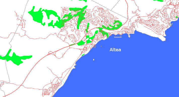 Altea cuenta con tres grandes zonas: un núcleo tradicional de interior con características aún rurales, un corredor costero en torno a la carretera nacional que ha ido creciendo con usos turísticos intercalados con los tradicionales de huerta, y un conjunto de grandes urbanizaciones de vivienda unifamiliar en Altea Hills. Estas urbanizaciones ocupan las zonas de colinas orientadas hacia Benidorm (y el sur), y combinan desarrollos de decenas de viviendas en serie según modelos estandarizados con proyectos individuales.