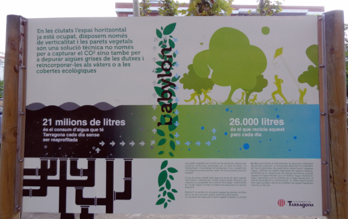 Panel informativo sobre el uso sostenible del agua en el parque anexo a la Tabacalera, el lugar donde ha tenido lugar el encuentro