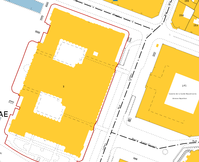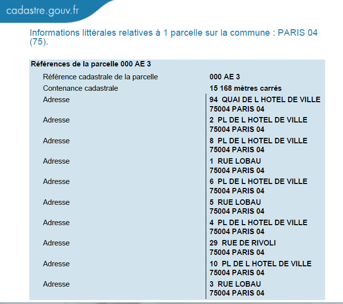 Plano catastral de la manzana del Ayuntamiento de ParísDatos catastrales del Ayuntamiento de París