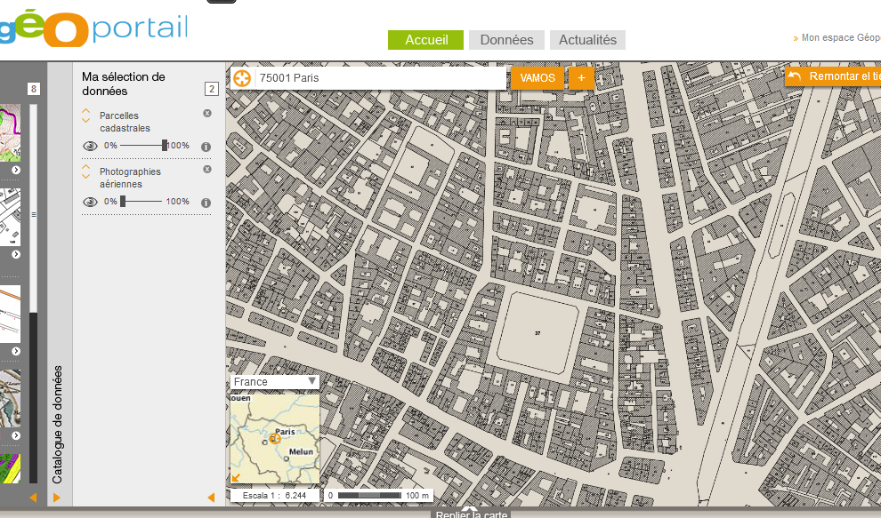 Sin embargo, el Geoportail aporta una magnifica visión de las parcelas catastrales en continuo, con independencia de los límites administrativos locales.