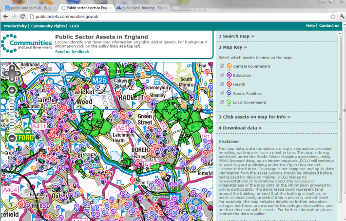 El sistema del Gobierno Británico para la venta de suelos públicos en desuso, destinado en parte a mejorar el parque residencial, tiene una importante base de datos.