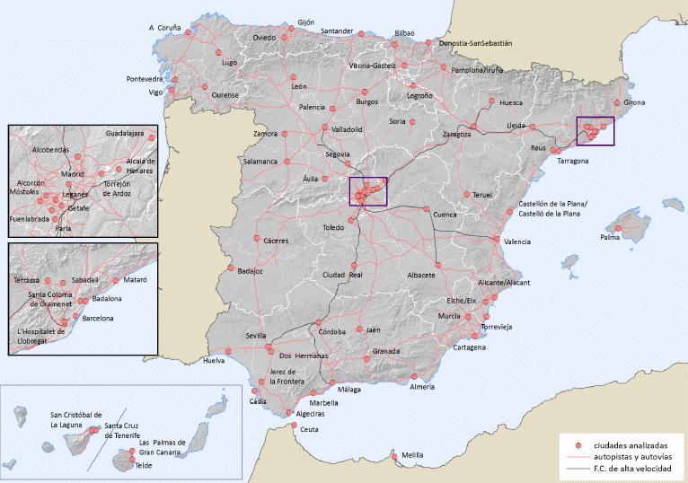 Parece que en algún momento Jorge Luis Borges escribió que la estadística es peor que la mentira; aunque la manipulación política de la estadística puede llegar a esos extremos, lo cierto es que la estadística no deja de ser uno de los instrumentos menos malos que existen para tratar de entender la realidad. El libro Capitales & Ciudades + 100 , publicado por el Ministerio de Fomento de España (competente en materia de obras públicas y también, aunque de forma menos directa, en políticas urbanas), , analiza las dinámicas en curso en 79 ciudades del país con una población cercana a los 20 millones de habitantes, más del 42% de la población española.