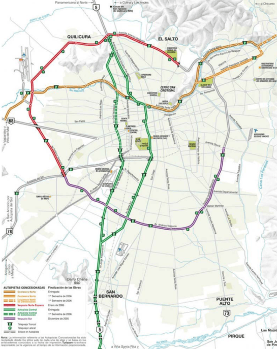According to an article by Oscar Figueroa on planeo.iet.cl, during the last decade 250 km of new urban highways have been built in the metropolitan area under concession to private operators and a toll system. Each highway is subject to a specific and distinct concession contract. Highway exchanges are sometimes deficient (Costanera Norte with Autopista Central, Vespucio Sur with Autopista Central), and an inadequate transversal section of in the poorer areas of the city create permeability problems for the inhabitants, that sometimes risk their lives crossing the traffic lanes as the overpasses are not enough.