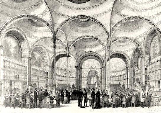 La Biblioteca Nacional de Francia (BNF) es una institución notable que mantiene varias salas de lectura de interés. Este artículo se refiere a la Salle Labrouste, en su edificio Richelieu, al norte del Louvre en el centro de París. La sala toma su nombre de Pierre François Henri Labrouste, un arquitecto francés del siglo XIX que utilizó de forma innovadora las nuevas estructuras de hierro. Para lo que ahora es la Salle Labrouste, inaugurada en 1868, creo un cuadrado de nueve cúpulas soportadas por unos pilares de hierro extremadamente esbeltos, creando un gran espacio con una mínima intrusión visual de la estructura y una buena luz natural (siempre en comparación con toras bibliotecas). Las cúpulas sólo se ven desde el interior, sin que desde el exterior se vea más de una cubierta convencional con la apertura para los lucernarios.