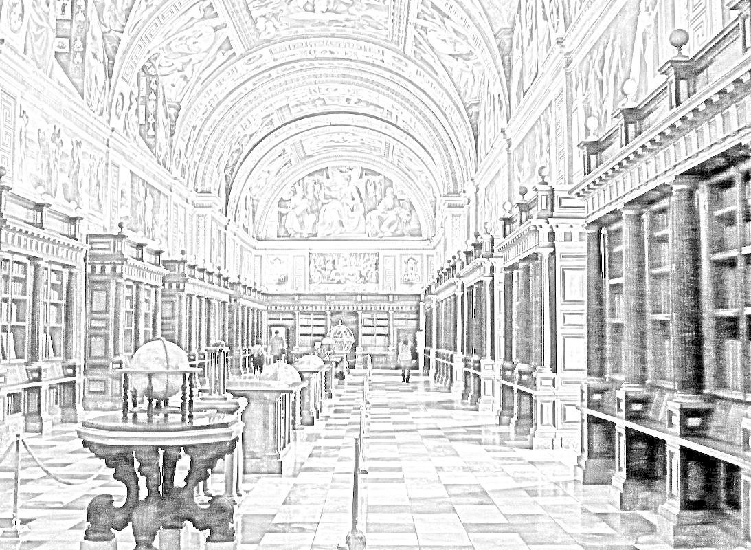 En 1559 el rey decide levantar un nuevo monasterio en El Escorial; lo que comenzó siendo un proyecto de gran centro religioso y panteón se convirtió en el centro del poder real. Los primeros libros llegaron en 1565, y en 1576 ya había 4546 volúmenes. En los años siguientes, la biblioteca sufrió incendios y varias amenazas. Hoy es un destino turístico (si visita El Escorial, está justo sobre la entrada principal). No es un espacio comparable a las grandes bibliotecas modernas, per sus riquezas están más en la calidad de sus fondos que en su mera cantidad.