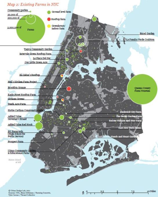 The Potential for Urban Agriculture in New York City. Growing Capacity, Food Security, & Green Infrastructure. Se trata de un estudio del Urban Design Lab del Earth Institute, parte de la Universidad de Columbia, desarrollado con una ayuda del New York State Energy Research and Development Authority (autoridad de investigación y desarrollo energético del Estado de Nueva York) y la Doris Duke Charitable Foundation.