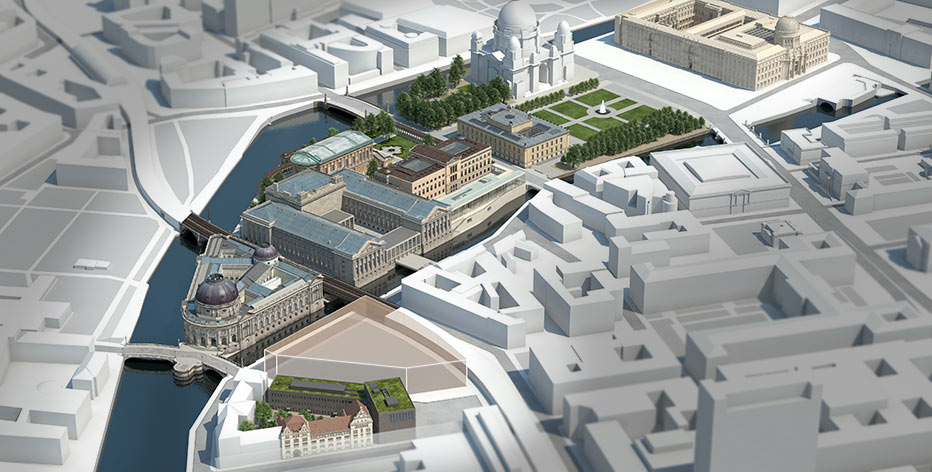 El Plan define un paseo arqueológico que buscan unir las colecciones de los museos Bode, de Pérgamo, Neues y Altes a nivel 0. Una sucesión de salas y patios harán del paseo arqueológico un eje interdisciplinar por la arquitectura monumental del mundo antiguo. Se reconstruyen columnatas preexistentes, y se crea la James Simon-Galerie, un edificio de nuevo proyecto con un lenguaje contemporáneo.
