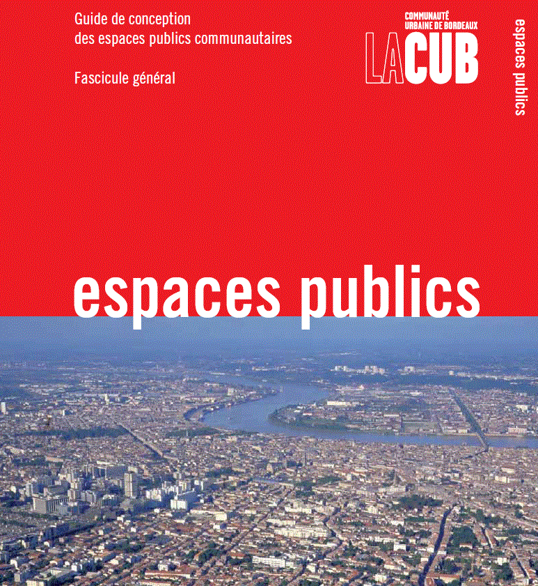 La Comunidad Urbana de Burdeos ha editado una guía para el proyecto de los espacios públicos. El documento acompaña a la Guía de Calidad Urbana y Urbanización Sostenible de la misma entidad. Cuenta con dos capítulos de recomendaciones y 3 de carácter normativo.