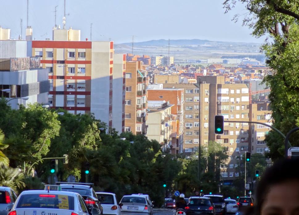 Doctor Esquerdo, en Madrid. Ocho carriles en la ronda interior, con mucho tráfico, y rodeados de toda la urbanidad posible. Y sin embargo, un cambio de rasante y de repente se ven los trigales a lo lejos…