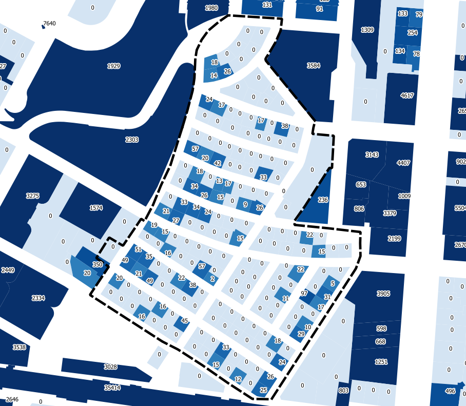 La superficie de las parcelas es bastante homogenea, teniendo en cuenta la configuración irregular del entorno.