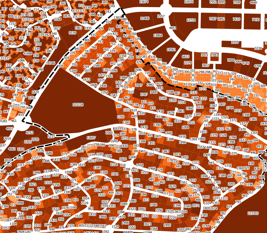 El gran tamaño del barrio hace que muchas de las parcelas fueran construidas a lo largo de un periodo extendido.