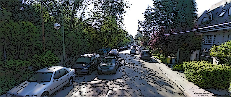 Los garajes cubiertos son comunes, pero no omnipresentes. La superficie de parcela permite un fácil aparcamiento en los jardines privados.