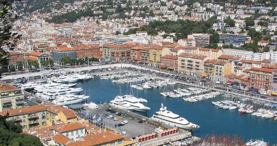 – En el puerto hay unos cuantos yates del tamaño de corbetas de la Armada (aunque no tantos, ni mucho menos, como en Montecarlo). En realidad un puerto de ese tipo es de las cosas que menos activas parecen, pero llama la atención en una dársena bastante ordenada que aun muestra rasgos italianos.