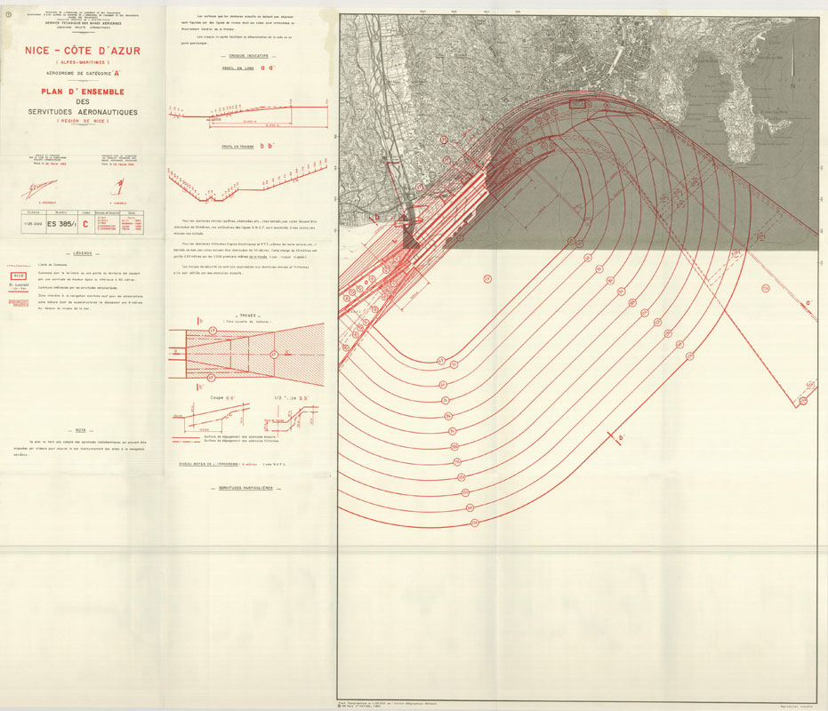 – Pasan muchos aviones (uno de los aeropuertos más transitados de Francia), y se los ve perfectamente aterrizar y despegar, las pistas parecen un portaviones; es como si se pudieran tocar, porque la aproximación es en curva (nunca había visto algo así, al menos en España), y eso da un aspecto mucho más dramático al tráfico. Y el plano de servidumbres parece más una arquitectura de Enric Miralles que los habituales.