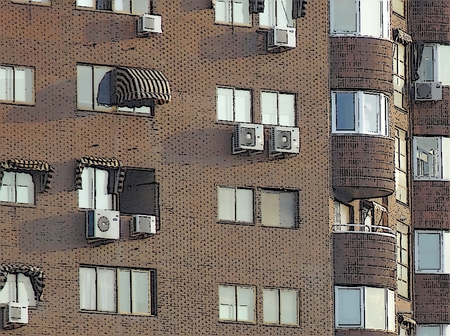 Aunque muchas veces las normas prohíben colocar las condensadoras de los aparatos de aire acondicionado en fachada, lo cierto es que en muchos casos se hace así porque es más fácil para el instalador, los conductos son más baratos y la máquina puede ser más eficiente. Como cada propietario llama en un momento distinto a un instalador que adopta su propio criterio, marca y modelo, la arquitectura acaba viéndose desfigurada. Aunque es cierto que algunas arquitecturas no pierden mucho porque tampoco son maravillosas, en otros casos el daño es claro. Por otra parte, la calidad del paisaje urbano no está solo en la belleza sublime, sino también en controlar la tendencia al abigarramiento.